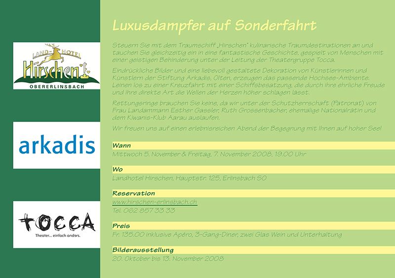 Aufgeführt am Mittwoch, 5. November und Freitag, 7. November 2008 im Landhotel Hirschen in Erlinsbach SO