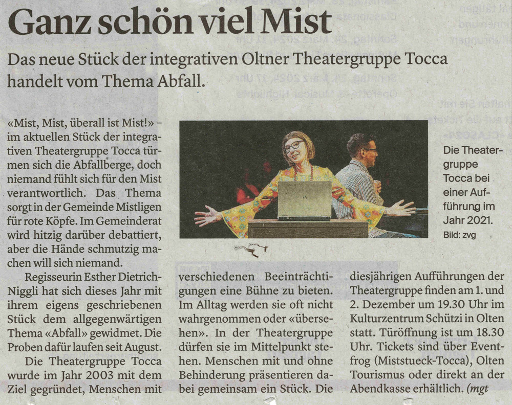 Aufgeführt am Freitag, 1. Dezember und Samstag, 2. Dezember 2023 im Kulturzentrum Schützi Olten