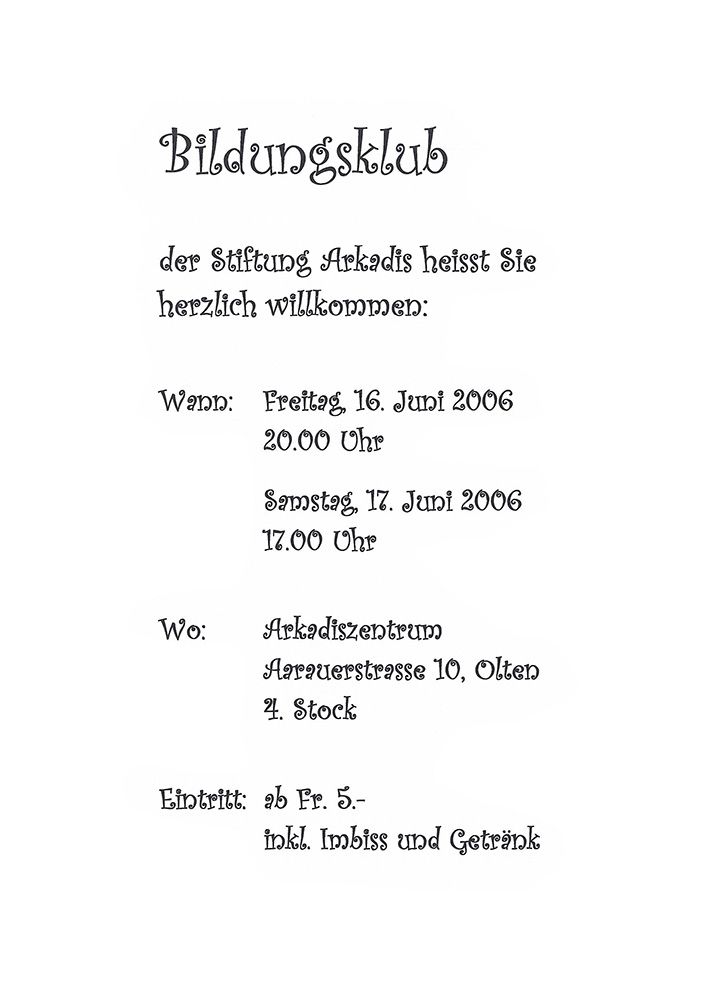 Aufgeführt am Freitag, 16. Juni und Samstag, 17. Juni 2006 im Arkadiszentrum in Olten