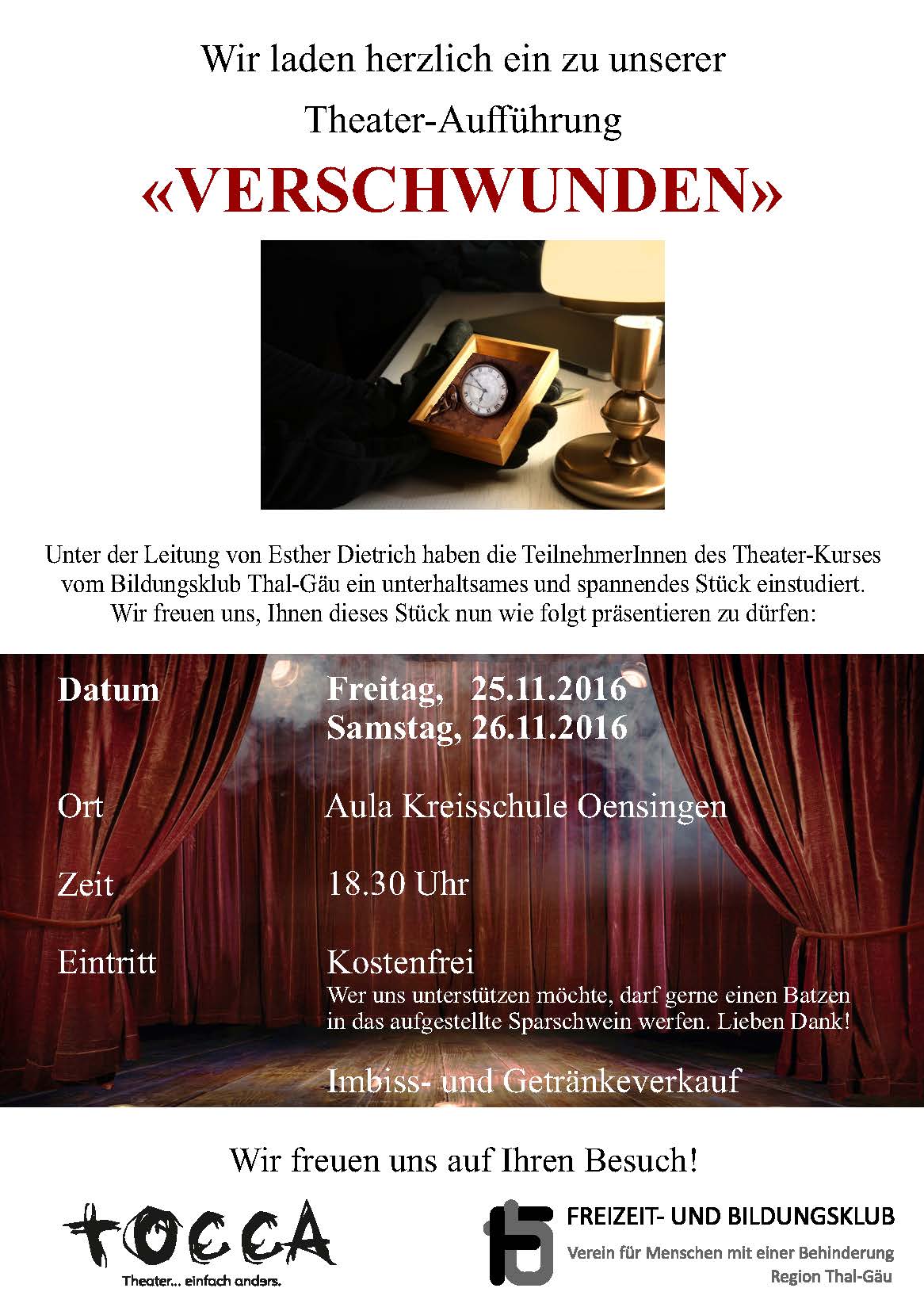 Der Freizeit- und Bildungsklub hat auf der Website Impressionen vom Theaterstück aufgeschaltet. www.freizeit-bildungsklub.ch